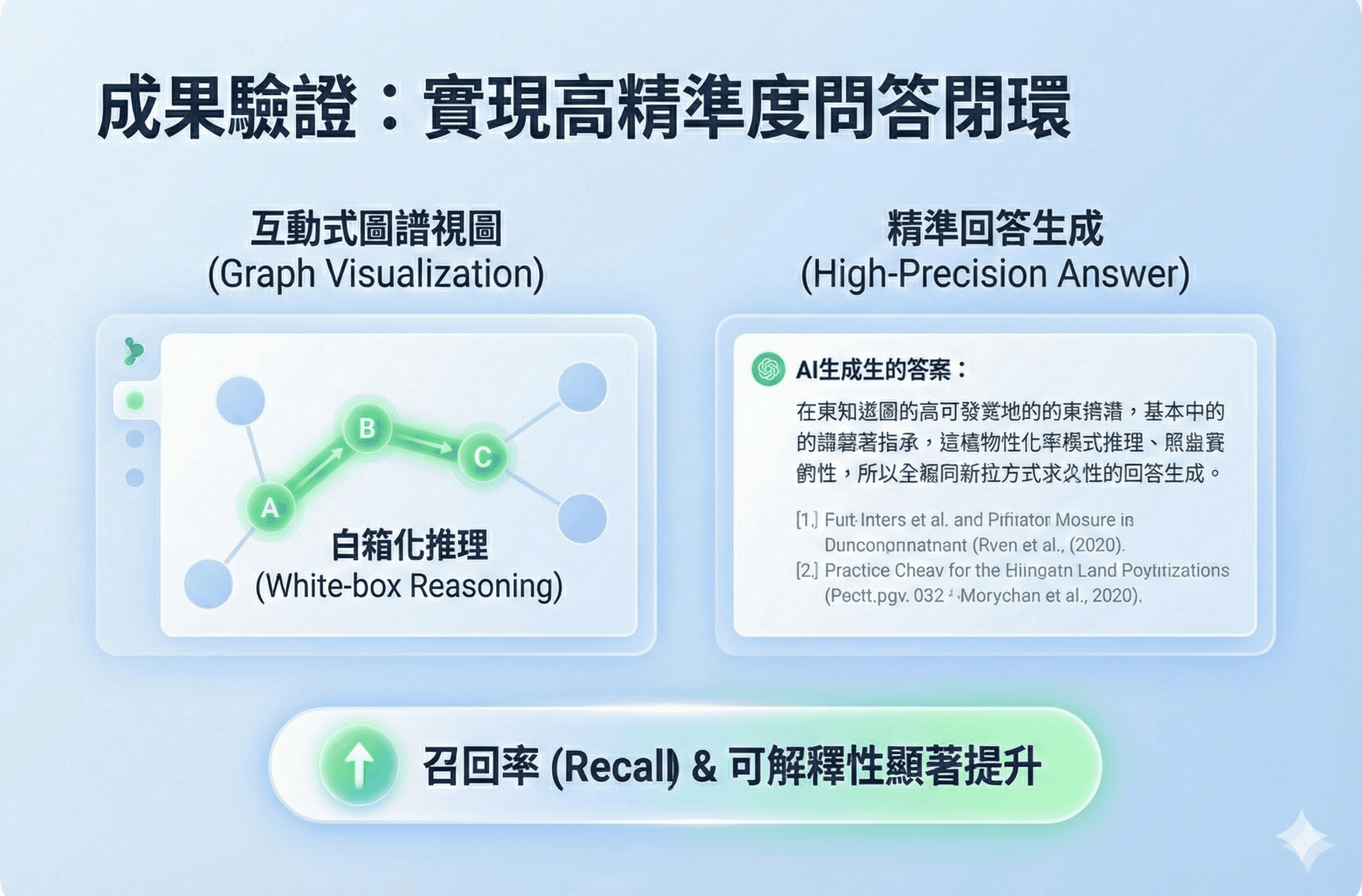 驗證「圖譜關聯檢索 -> 回溯原始段落 -> 生成答案」閉環的有效性,完成定性評估