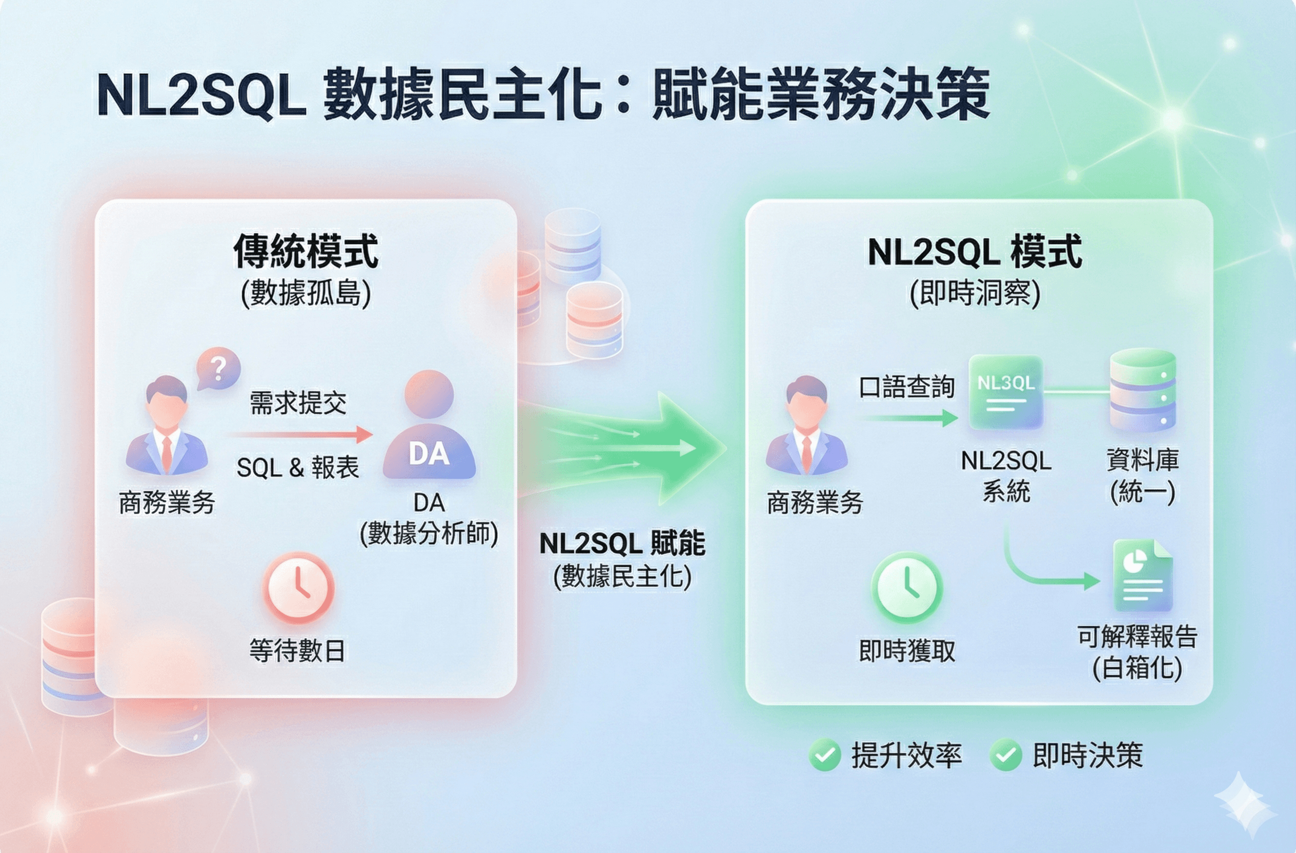 價值:大幅提升結構化資料應用效率,讓業務決策者能即時獲取數據,縮短從「產生問題」到「獲得答案」的決策週期