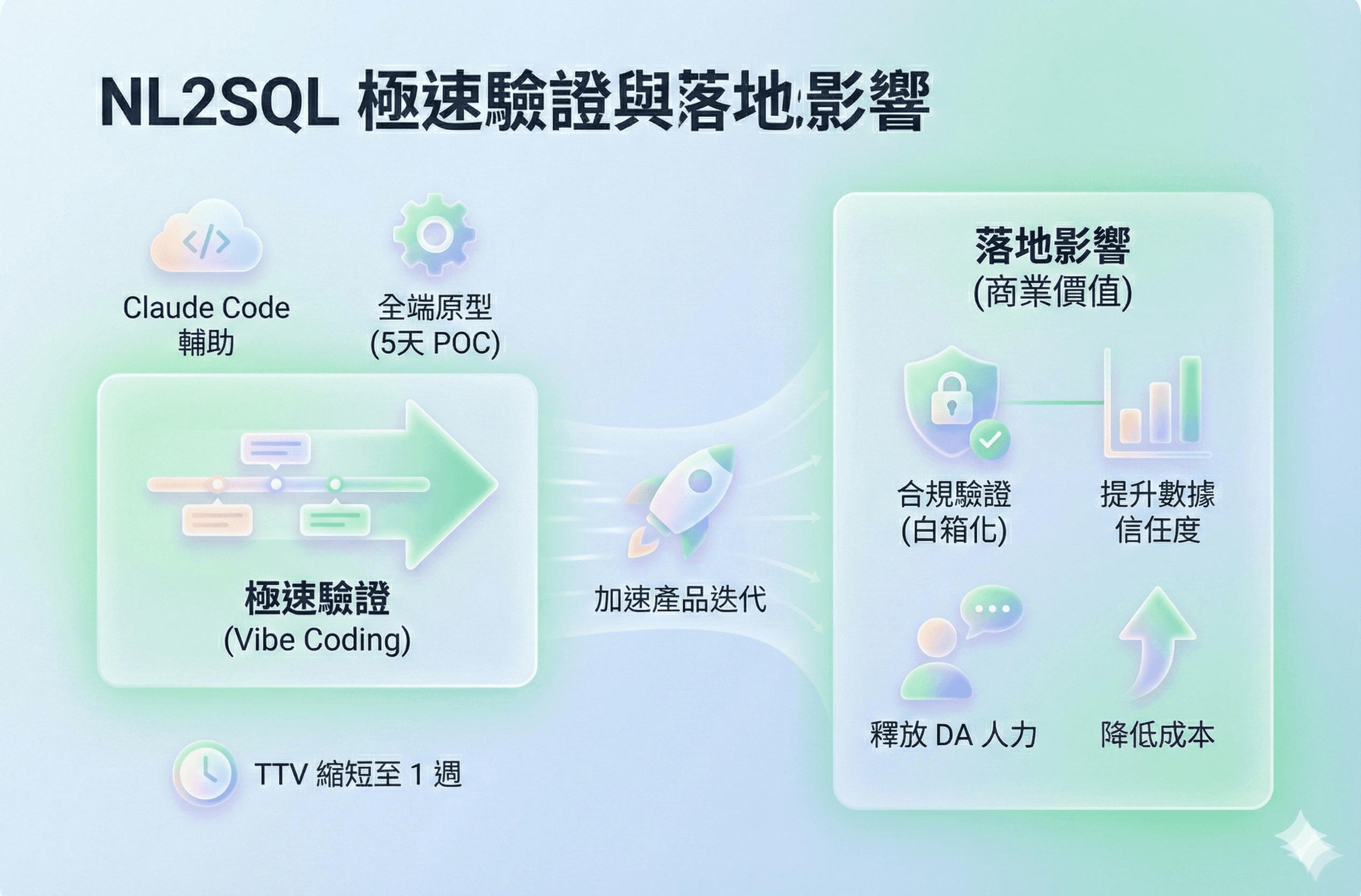 使用 Claude Code 進行 vibe coding,在一週內快速搭建包含 Schema 解析、查詢轉譯到結果解釋的完整 POC,驗證技術可行性