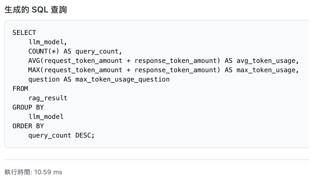 將數據轉為文字詮釋( Result-to-Text Generator ) | SQL 查詢數據( SQL Query Generator ) |