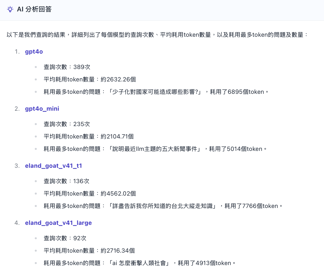 POC 驗證證實,本方案能精準處理包含多重篩選、聚合計算(Group By)、比例運算等複雜邏輯的商業提問,填補了原產品線在「精確數據檢索」上的功能缺口