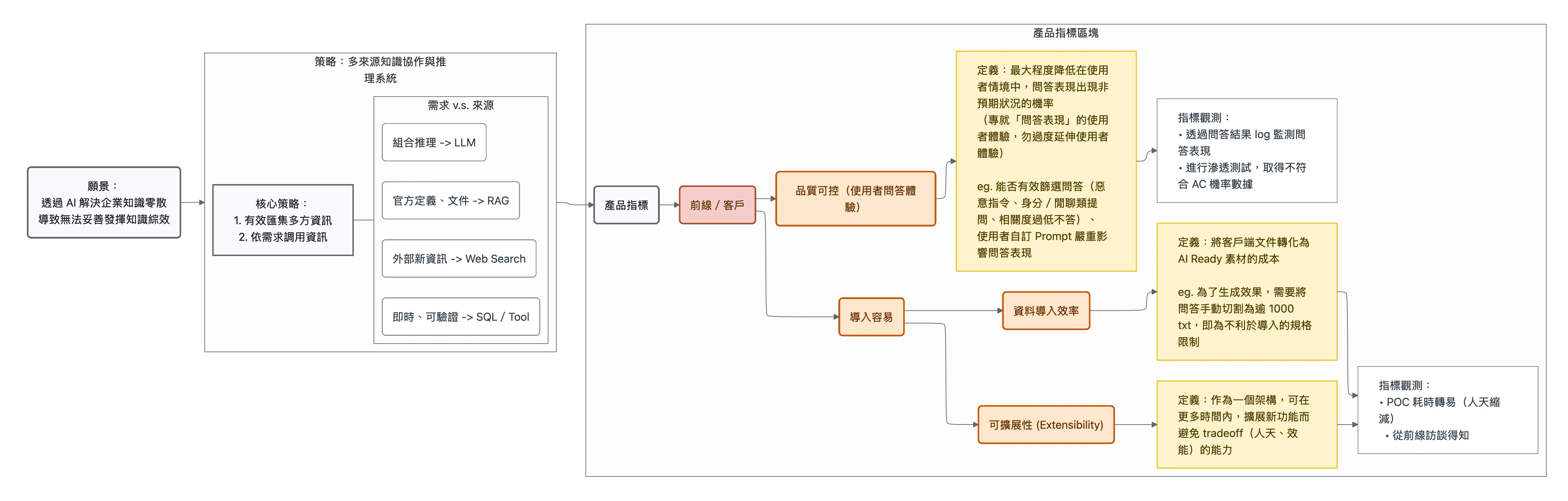 前線 / 客戶指標( eg. 品質可控( 使用者問答體驗 )、導入容易 )