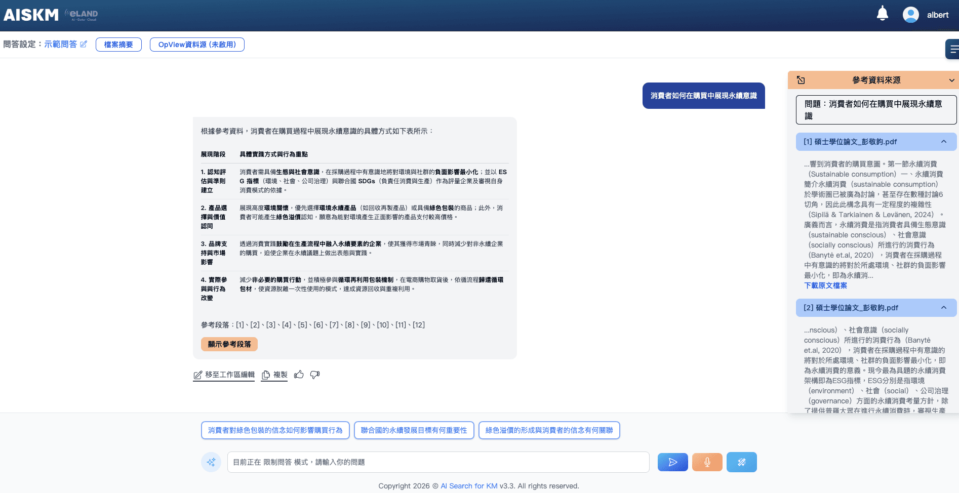 AI Search for KM 是意藍資訊自研的企業級知識管理中台,透過 RAG(讓 AI 在回答前先去知識庫查資料,而非憑空生成)與 Tool Calling(讓 AI 依需求自動呼叫外部工具或資料庫)整合文件、資料庫與外部網頁,目標是建構「可控、可信」的企業知識搜尋體驗。